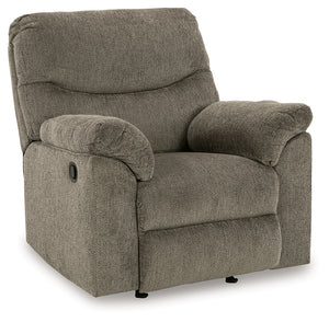 Sincere in its styling, this rocker recliner invites a relaxed sensibility into your space. Its neutral upholstery has a universal appeal, with pull-tab reclining making it easy to kick back in comfort. Providing high-quality functionality at an affordable price, this recliner marries well with a myriad of design aesthetics.