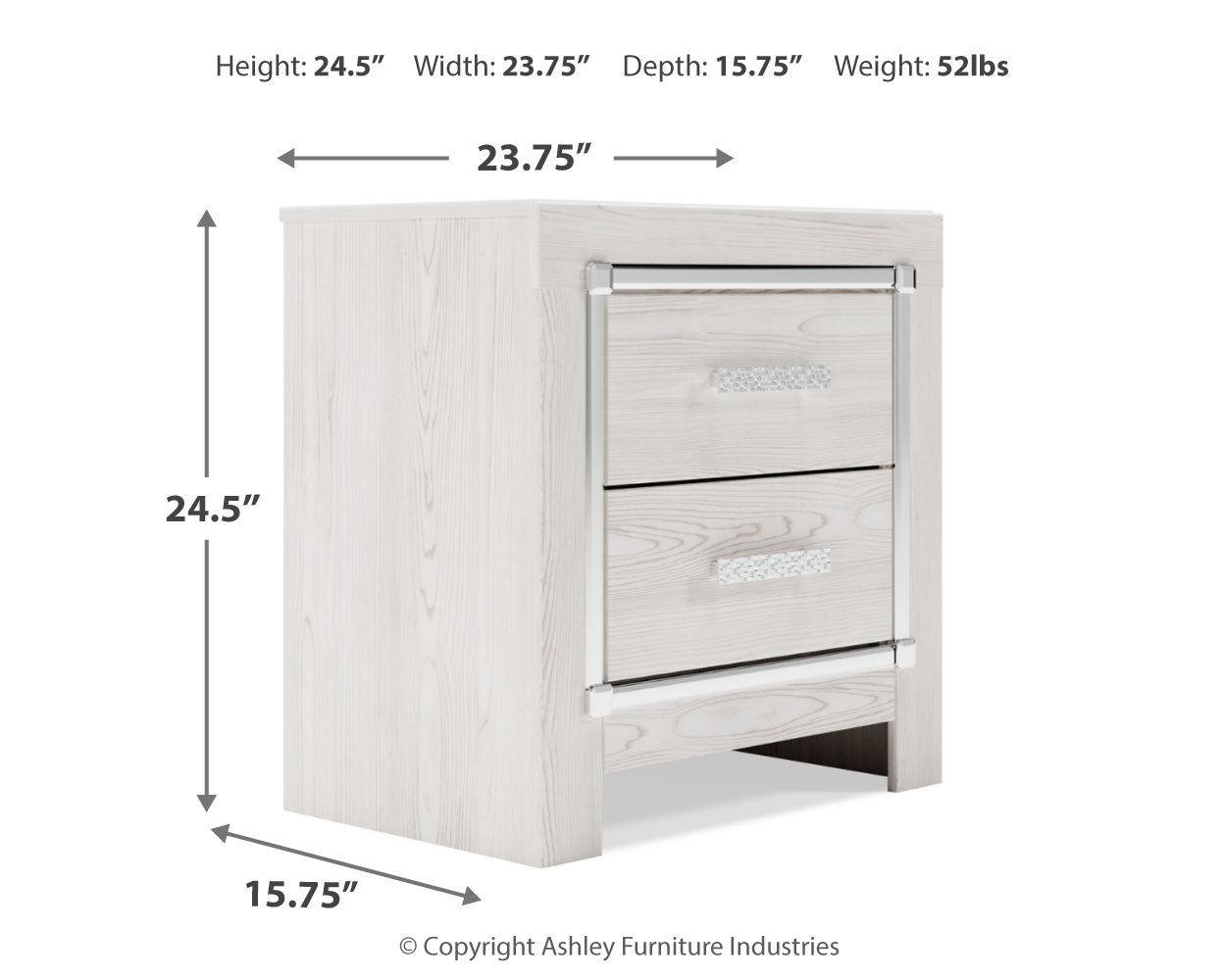 The epitome of fashion-forward design, this queen upholstered storage bed with matching dresser, mirror and nightstand is a beautiful blend of comfort and luxury. Shiny chrome-tone accents, a pearlized finish and button-tufted upholstery bring a glam touch to the richly rustic appearance. Remote-controlled LED lighting adds style and modern convenience to your restful retreat.