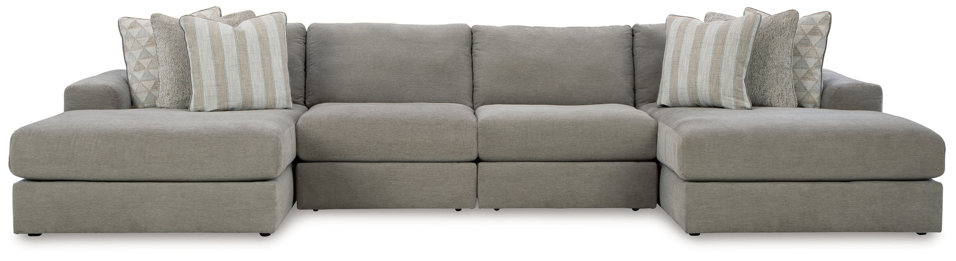 Includes 4 modular pieces: left-arm facing corner chaise, right-arm facing corner chaise and 2 armless chairs,
