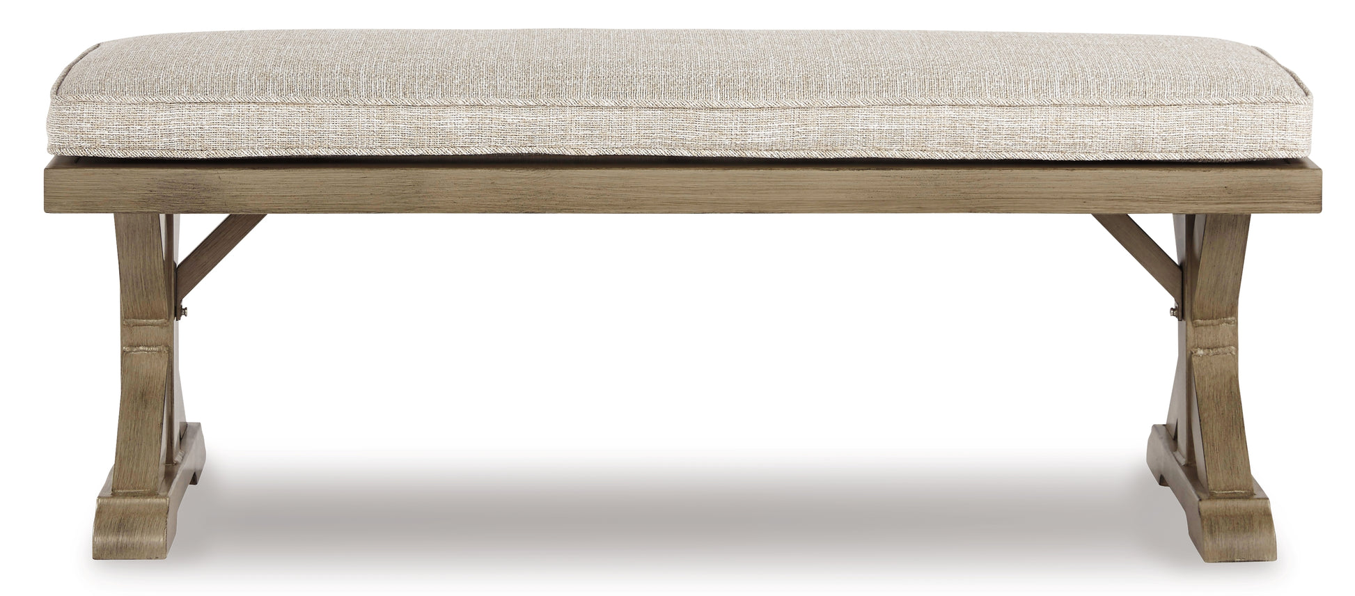Sporting an easy-on-the-eyes look inspired by driftwood, this bench with cushion elevates the art of alfresco living. Beautiful and durable enough for indoor and outdoor use, the casually cool seating entices with striking X-leg farmhouse styling and a plush, removable cushion wrapped in high-performing Nuvella® fabric that’s a breeze to keep clean.