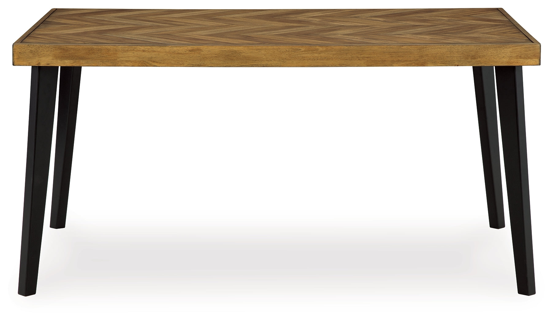 Table made with rubberwood solids, acacia veneer and MDF substrates,