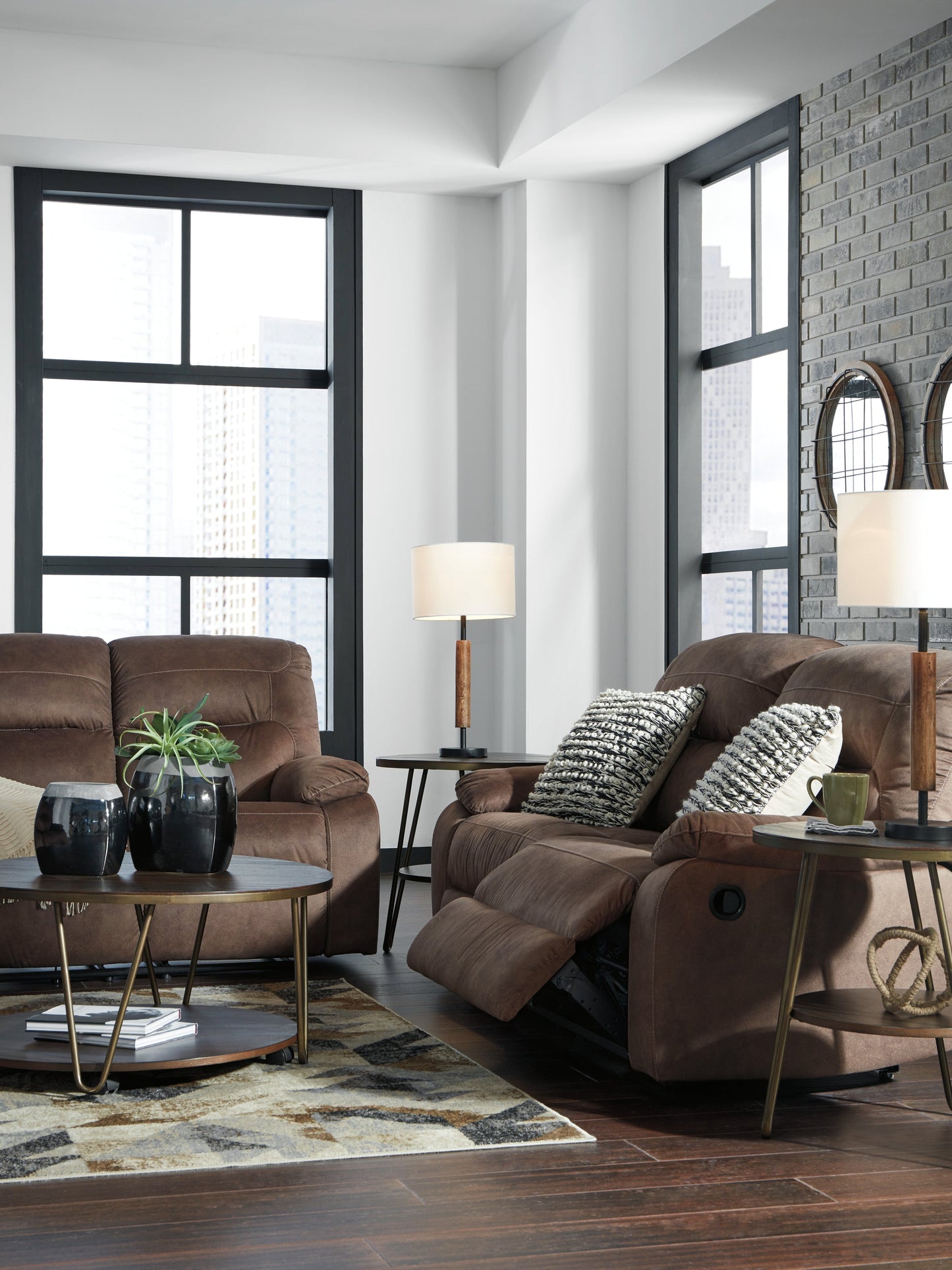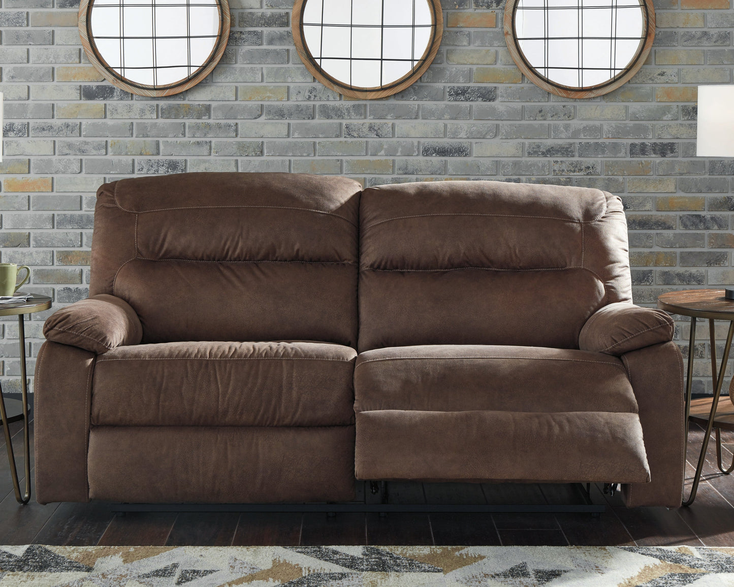 Looking for a sleek 2-seater? This reclining sofa is your saving grace. Coffee brown microfiber cover is soft to the touch and padded for your comfort. Beautiful lines exhibit exceptional craftsmanship. Smaller-than-normal scale brings quality to even compact spaces. Now you can worry less about finding the perfect recliner for your room and relax more.