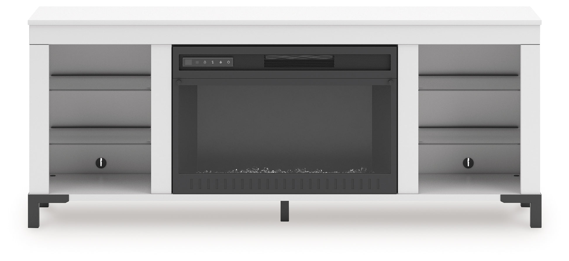 Level up your gaming experience and make movie nights to remember. This TV stand with electric fireplace extends your entertainment beyond the screen. Its built-in fireplace brings the heat, synchronizing with LED backlighting on the shelves. And you can customize the vibe with three trendy color options: blue, white and red. Modern function. Captivating, cool style. With this TV stand, revamp your home’s recreational hub like never before.