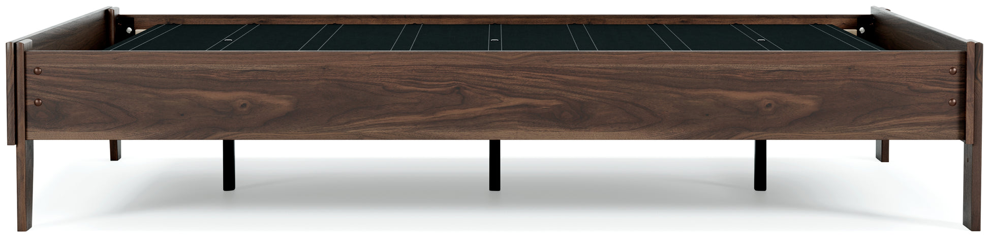 At the intersection of classic cool and chic sophistication you’ll find this full platform bed. The rich brown finish over replicated walnut wood grain offers an authentic touch that plays well any way you style it. Minimal yet elegant in its design, this bed keeps your home decor grounded while elevating your modern style.