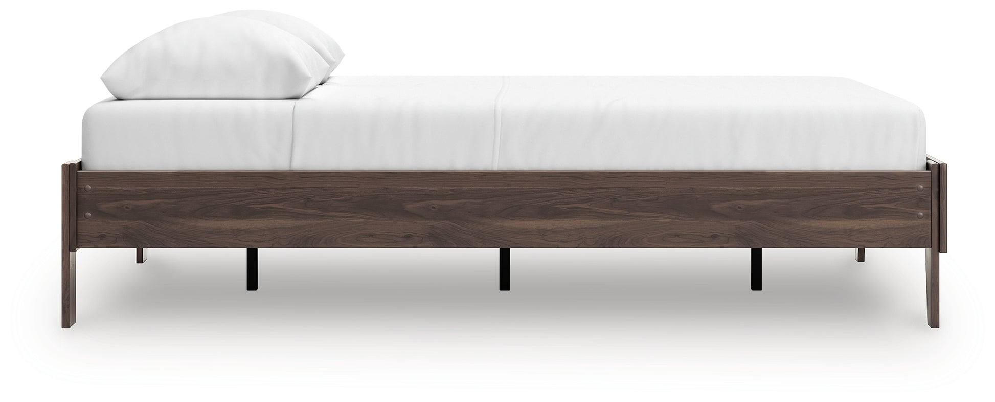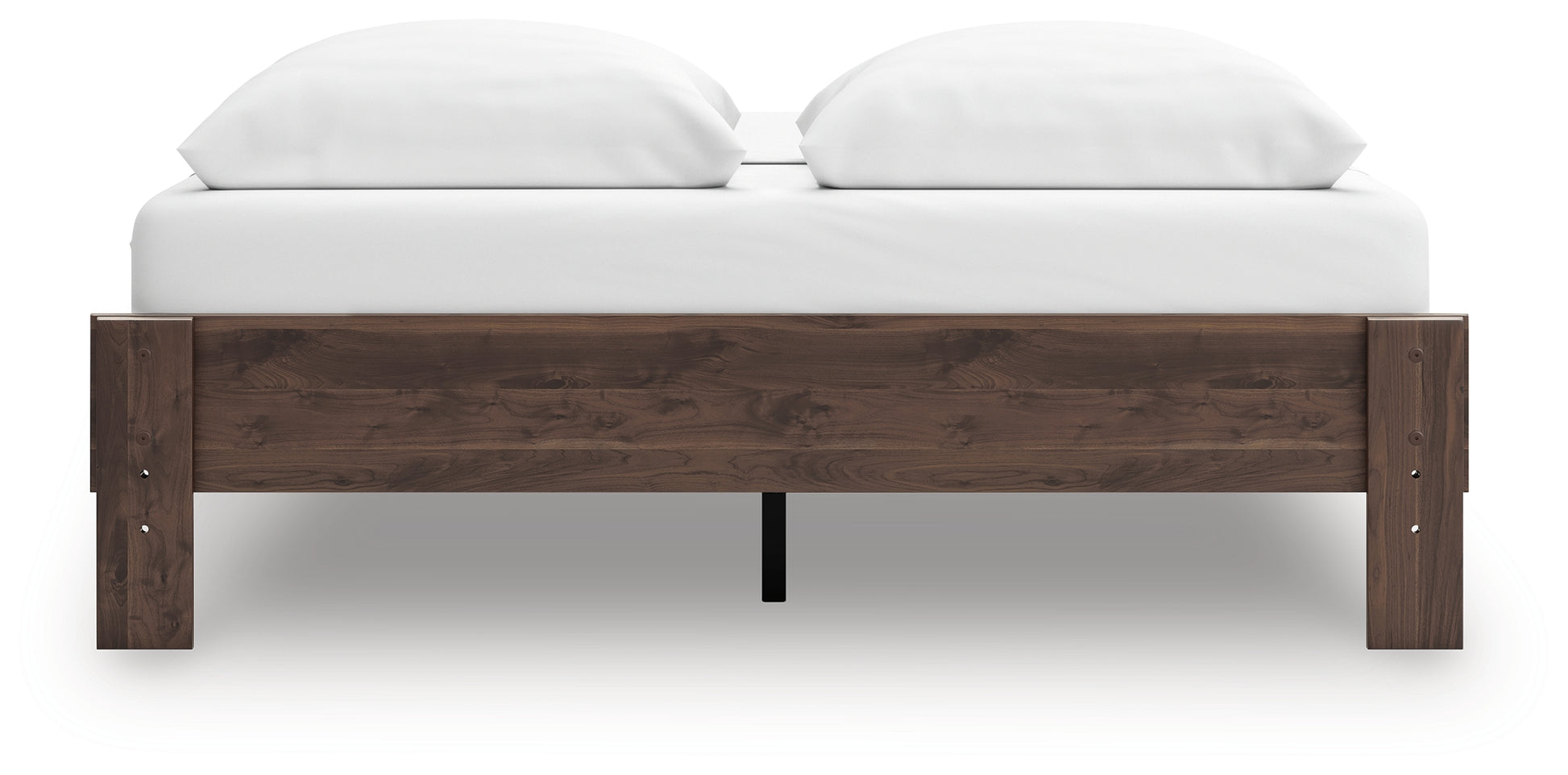 At the intersection of classic cool and chic sophistication you’ll find this queen platform bed. The rich brown finish over replicated walnut wood grain offers an authentic touch that plays well any way you style it. Minimal yet elegant in its design, this bed keeps your home decor grounded while elevating your modern style.
