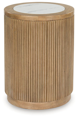 Elegance meets earthy charm in this end table. Crafting a contemporary living room? The faux Carrara marble top expertly pairs with the reeded base for a trend-right take on day-to-day function. It’s an ideal spot to rest remotes, a drink or small decorative accents.