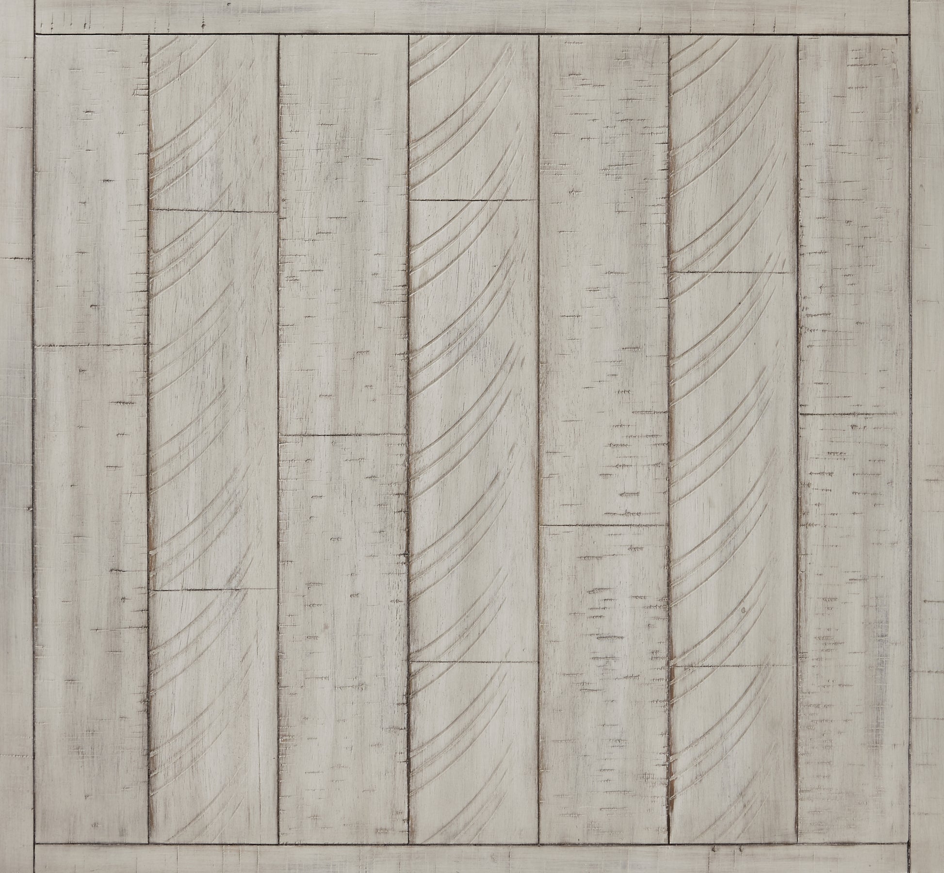 Double up on form and function with this square coffee table with storage. Its dual-lid tabletop provides easy access to the roomy storage space. Crafted with a distressed whitewash finish, crossbuck detailing and metal bracket appliques, this generously scaled coffee table is rustic farmhouse living at its best. 2 Matching end tables included.