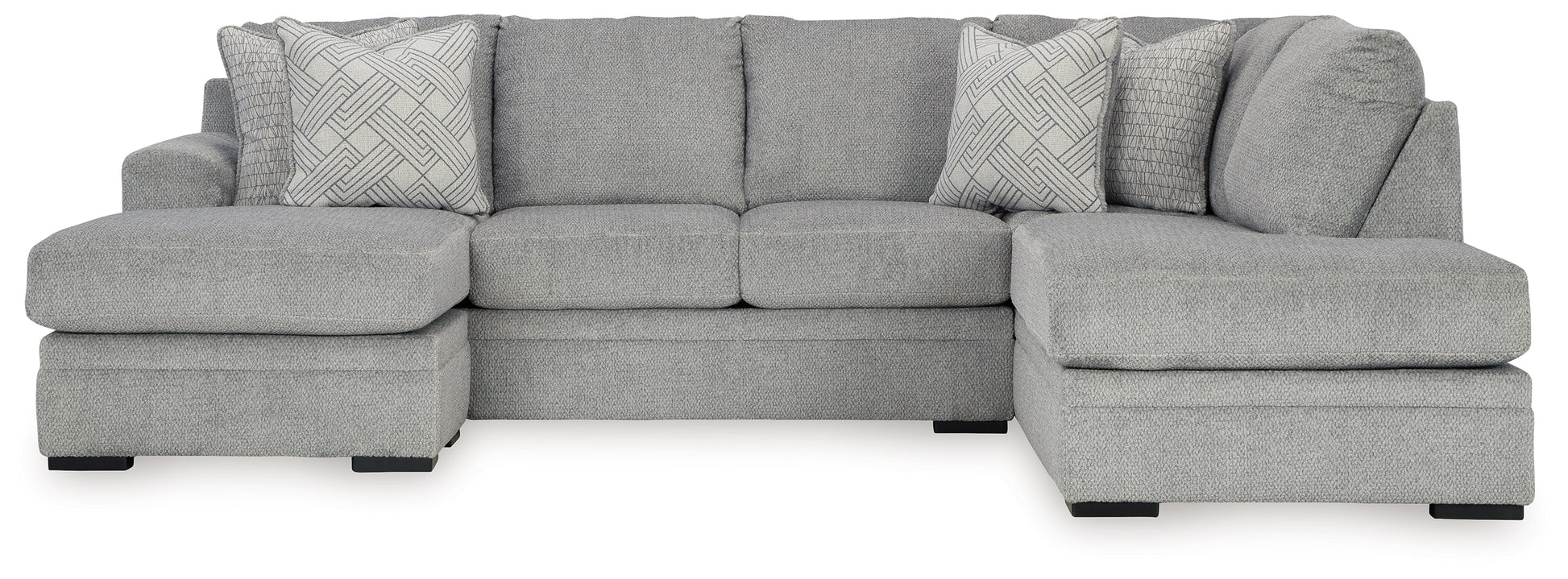 Includes 2 pieces: left-arm facing sofa chaise and right-arm facing corner chaise,