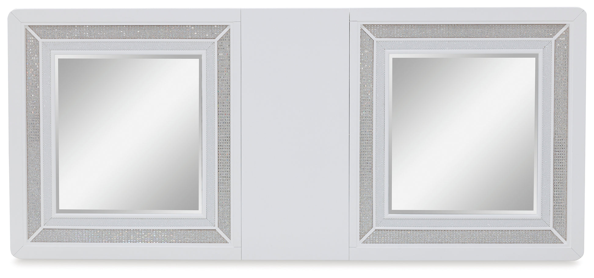 Tabletops feature rhinestone and textured PVC framing with glass panels,