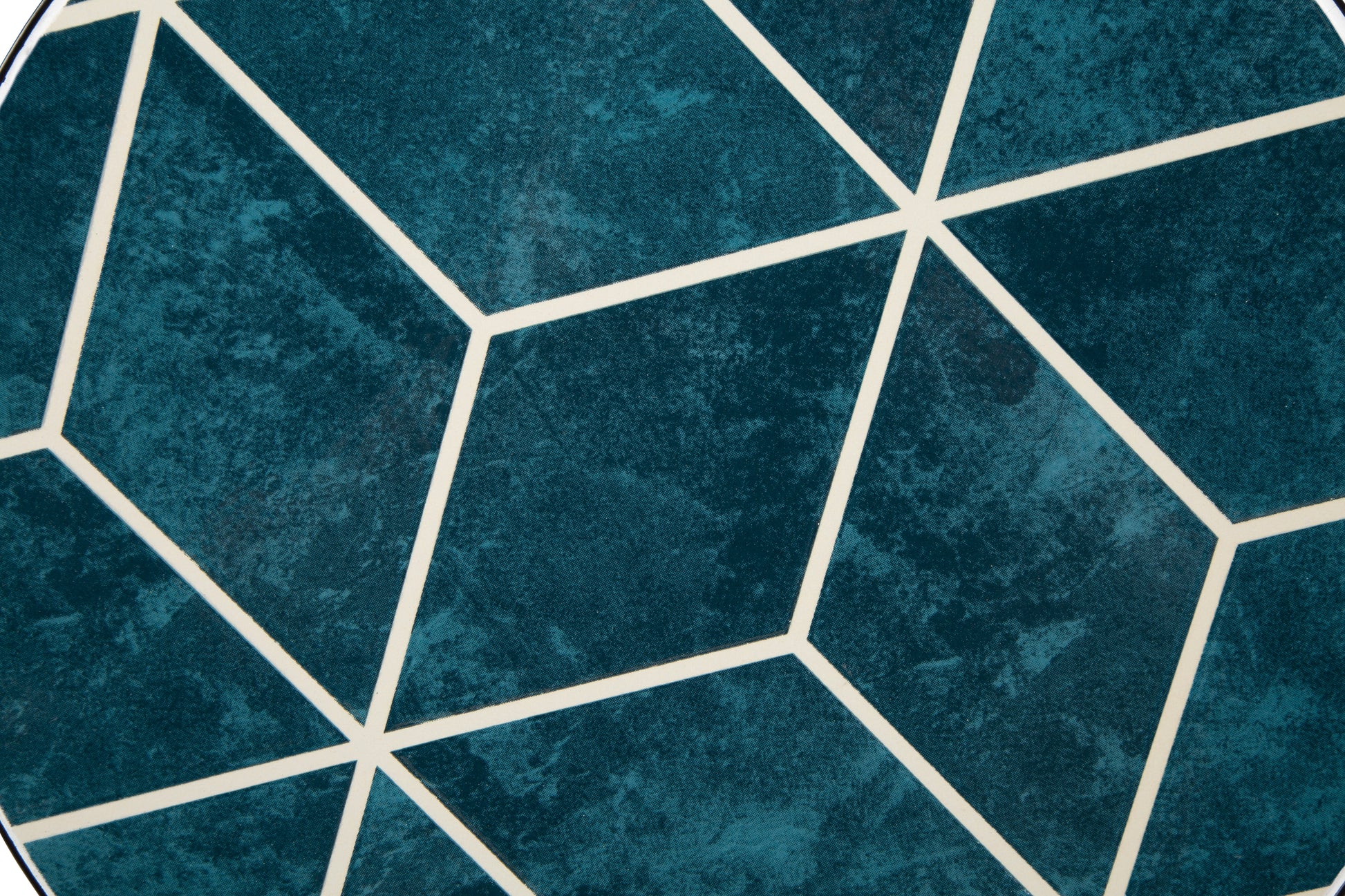 This accent table set enamors all with its striking style. The mesmerizing diamond pattern top graces your space with a splash of geometric design and a dashing two-tone teal glaze. Dazzle guests by making it a resting place for cocktails and hors d\'oeuvres at parties—or keep this piece all to yourself as a bedside table for books and other baubles.