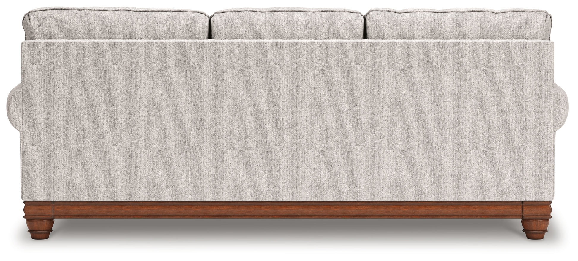 Fresh yet classic. That’s the beauty of this sofa. Dressy and also soft to the touch, its organic neutral-toned upholstery is sure to bring a transitional farmhouse aesthetic to your living space. Accent pillows in windowpane plaid and textured solid hues infuse a cozy and inviting farmhouse sensibility, while a full wraparound base and decorative turned legs complete the sofa\'s timeless look. It\'s the perfect place to unwind with your besties after a long day.