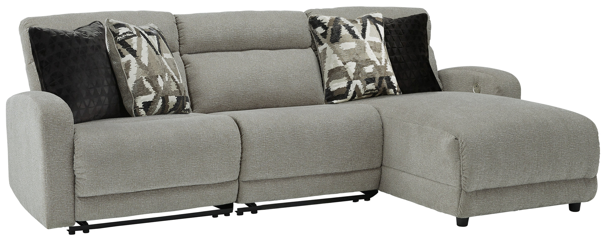 Includes 3 pieces: left-arm facing power recliner, armless power recliner and right-arm facing power reclining back chaise,
