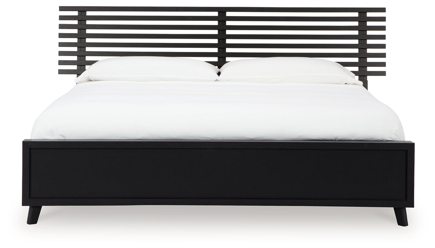 Sophisticated style for the savvy shopper. This panel bed prioritizes affordable, on-trend design. Its subtle replicated texture recalls the natural beauty of wood, highlighting the slatted styling. And a matte black finish savvily suits different approaches to modern aesthetics. Mix and match with light and bright hues, or pair with other dark tones for a moody look.