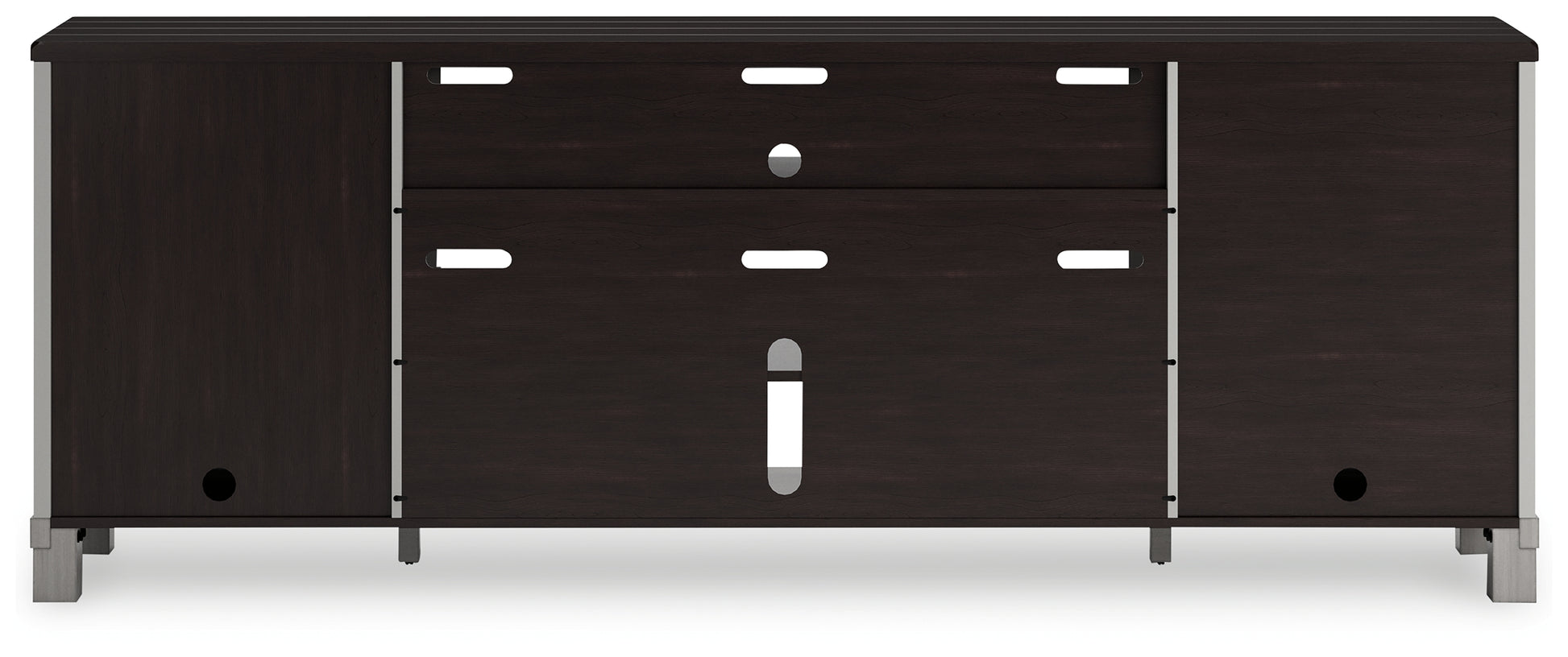 Make a farmhouse-inspired statement with this TV stand. It’s beautifully crafted to stand the test of time, with a planked effect and clean two-tone finish that lend a relaxing vintage feel. With two cabinets (each with an adjustable shelf) and an open cubby, it offers plenty of storage to house all of your electronic needs. Enhancing the experience: the optional fireplace insert (sold separately) brings a touch of warmth and beautiful ambiance to your living room.