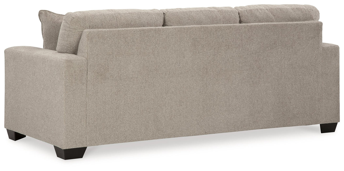 You’re in for a neat treat with this sofa. Its comfy seats are covered in soft, textural upholstery, and the wide track arms are eager to support your quest for total relaxation. Distressed abstract toss pillows bring a fresh breath of contemporary style while accentuating the sofa\'s color.