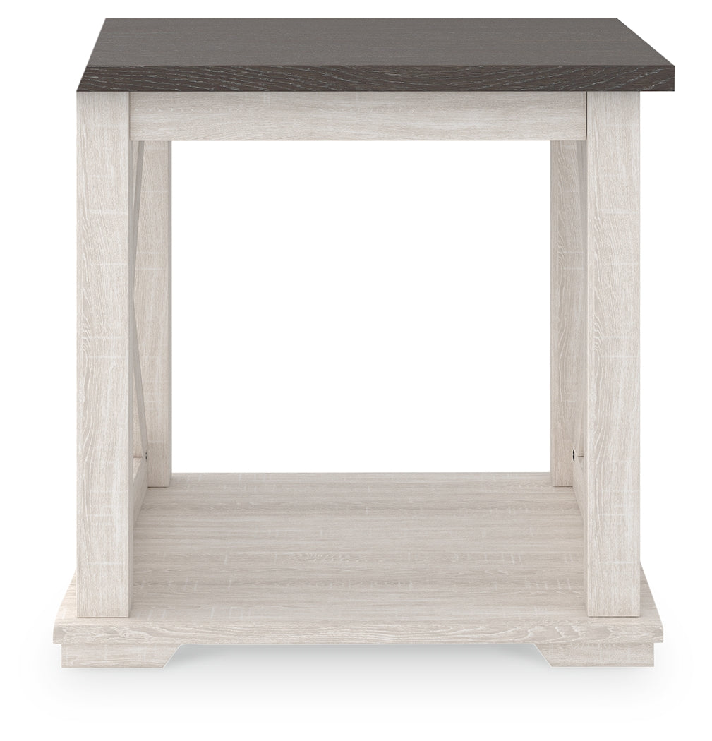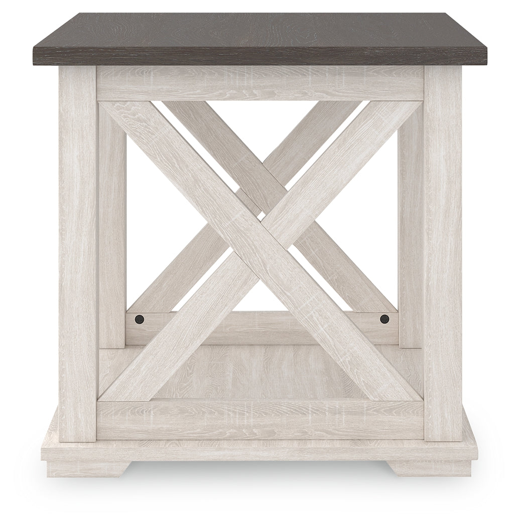Raise the bar on modern farmhouse design with this versatile end table. Sporting a two-tone, gray and antiqued white color scheme and cross buck design, this table makes a statement wherever it lands. With its generous shelved storage space, this home essential is packed with possibilities.