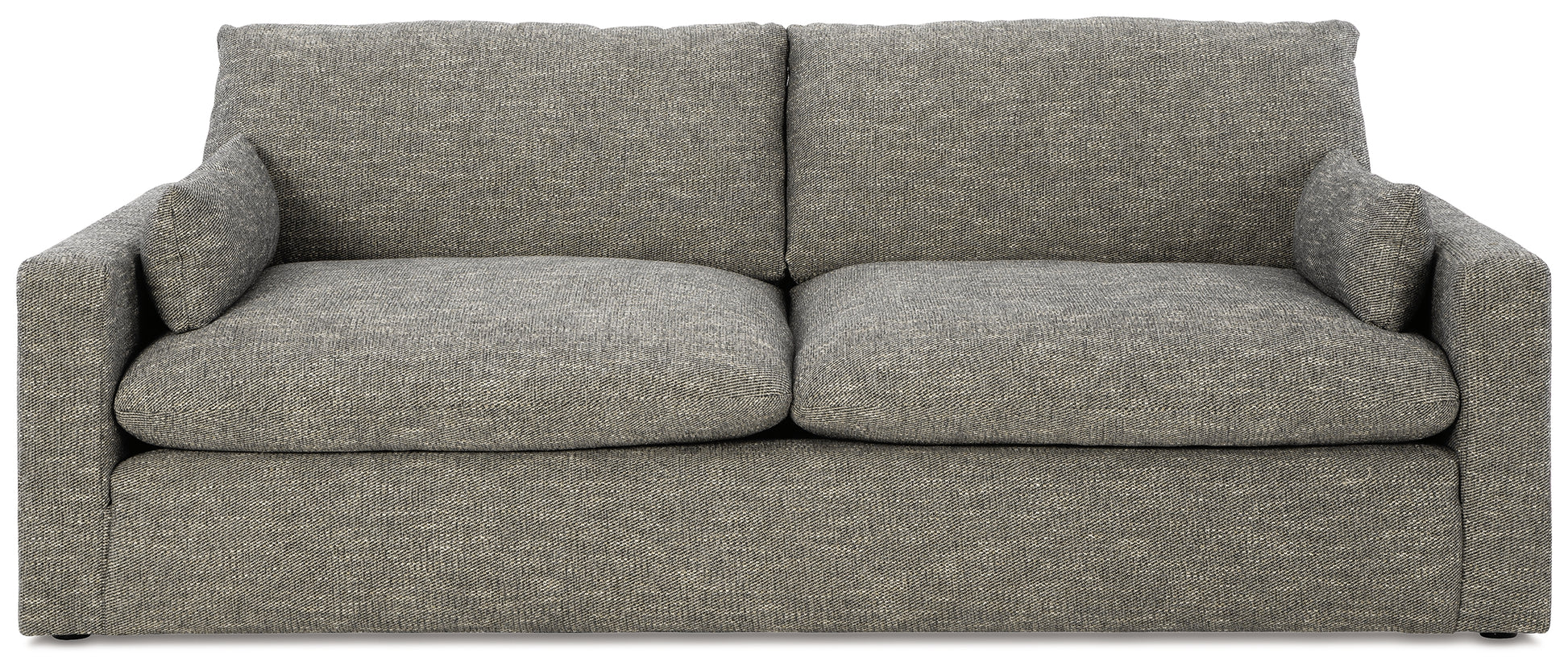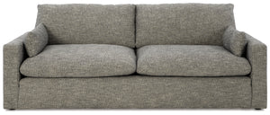 On the days when rest and relaxation seem out of reach, this sofa provides a positively plush seating experience. Its feather-fiber blend cushions invite you to float away in complete comfort. Striking granite-hued upholstery and a streamlined frame grant this cozy piece a look well-suited to contemporary spaces.