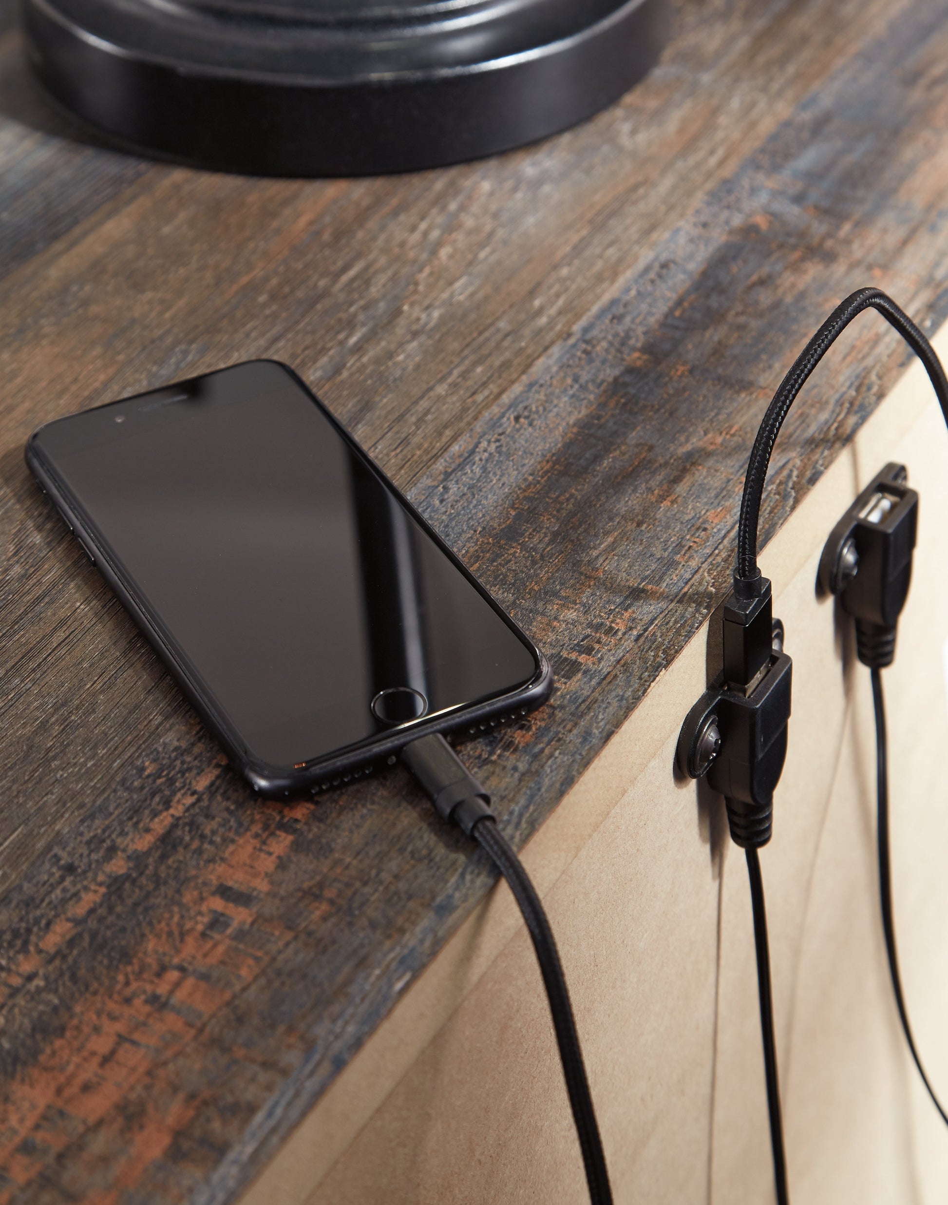 This king-size panel storage bed, dresser, mirror and nightstand is a refined take on barn board beauty. Its complex, replicated wood grain showcases hints of burnt orange and teal tones for a sense of weatherworn authenticity. Double drawers at the foot of the bed also come in mighty handy. The dresser with six smooth-gliding drawers lined with faux linen laminate and industrial dark-tone hardware complete this rustic and industrial style bedroom.