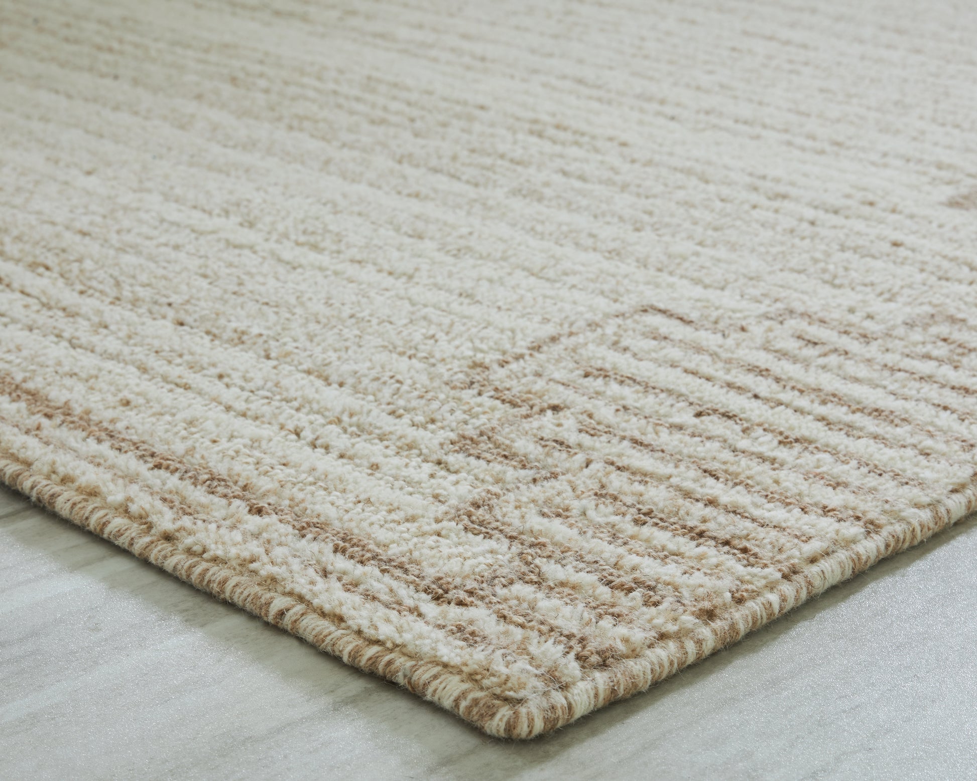 Dress up any floor with the tastefully approachable design of this rug. Its distinctive stepped border pattern, rendered in versatile neutrals, creates a subtly eye-catching look that brings modern elegance to any casual space. Crafted from wool with a generous pile, this rug doesn\'t just stun with its good looks—it also delivers an indulgent feel underfoot.