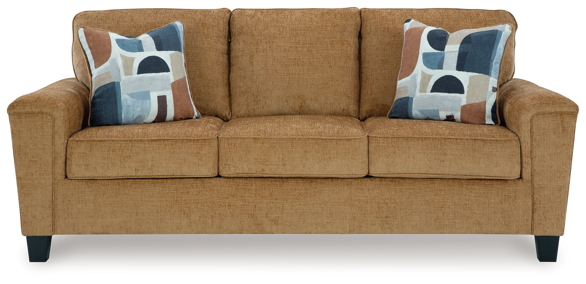 There’s something about this sofa that’s so easy to appreciate. Maybe it’s the plush upholstery and comforting earthy tone, eager to support your quest for total relaxation. Perhaps it\'s the modern flair of its simple lines, tapered legs and abstract-patterned pillows. Whatever it is that appeals to you, this is a piece you\'re gonna love.