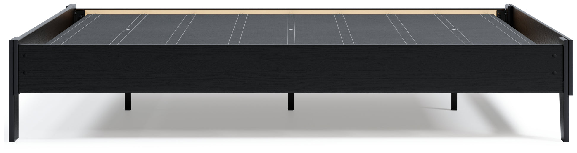 If you’re a fan of clean, crisp and contemporary interiors, rest assured this queen platform bed suits you. The linear profile is enhanced with a matte black finish with subtle replicated wood grain. Hard to believe such high style can be so attractively priced.