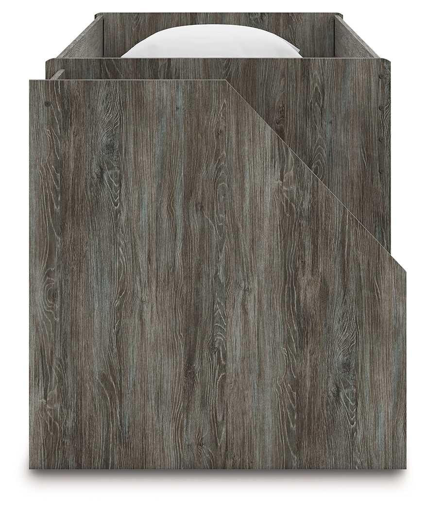 Cool, casual style is for all ages. With this bedroom package, they get the function they need plus the refined design you love. Approachably neutral in a rustic warm gray, this set is adaptable enough to pair with an assortment of existing colors and decor. The faux metal detailing with nailhead accents lends an industrial edge.