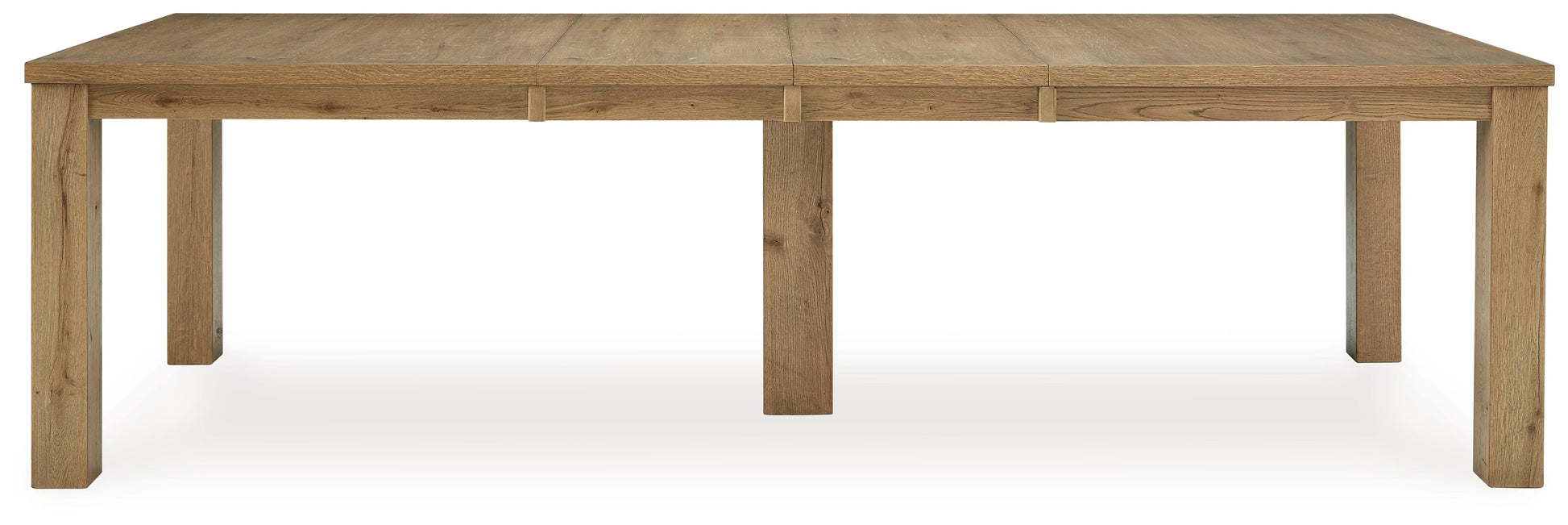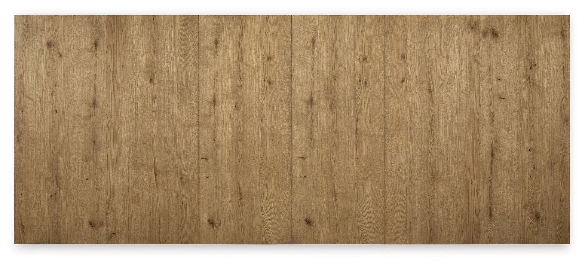 This dining table brings a rustic vibe to urban contemporary design. It’s a modern approach to natural beauty, with a rustic oak finish defining its thick tabletop and sturdy legs. And the table\'s color palette is stunningly simple, allowing it to coordinate seamlessly with your existing decor.