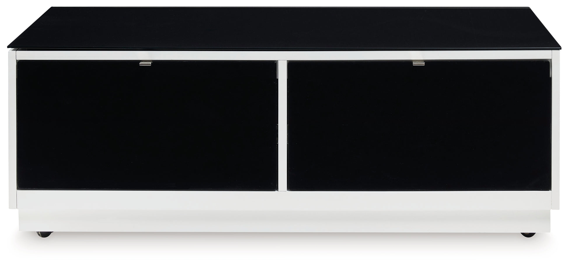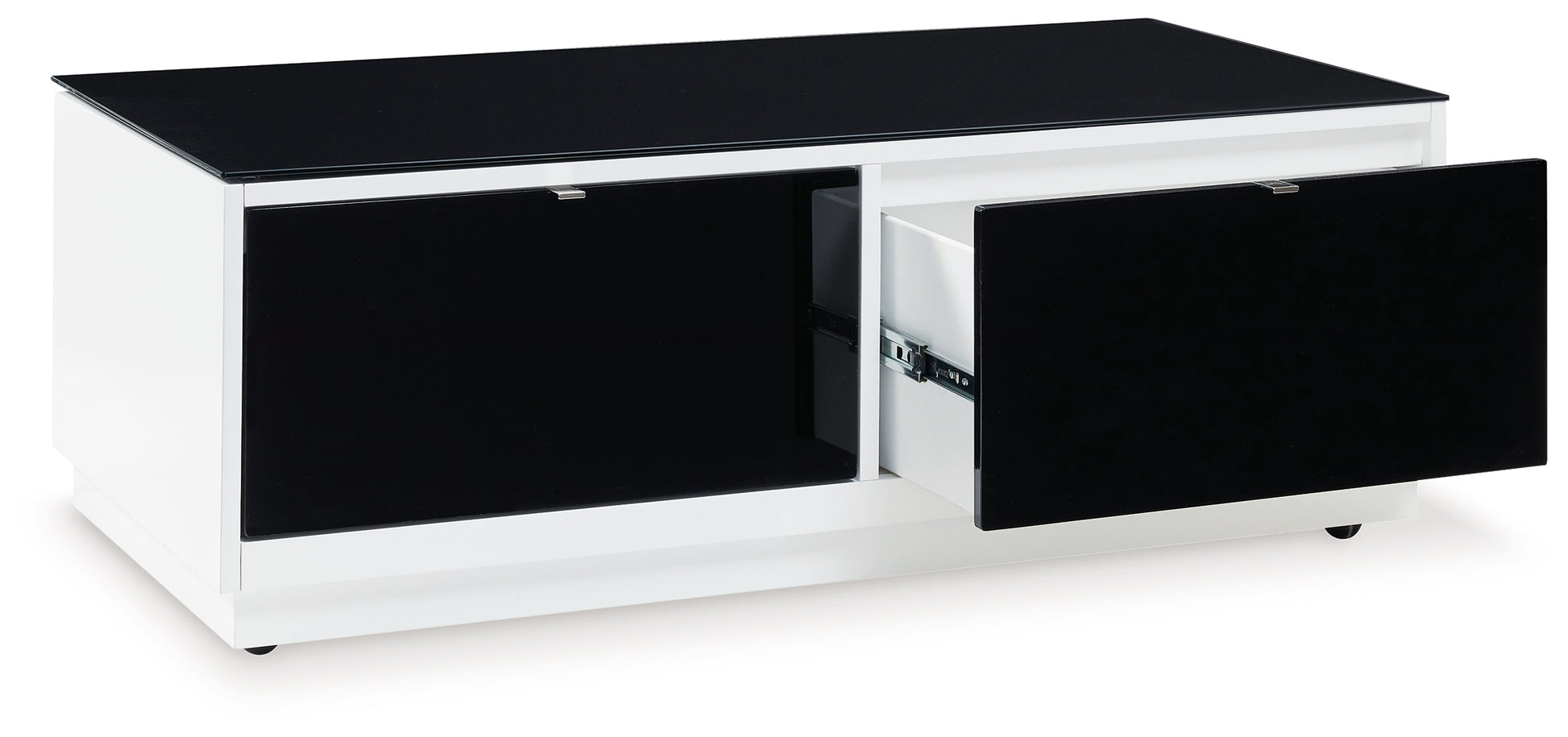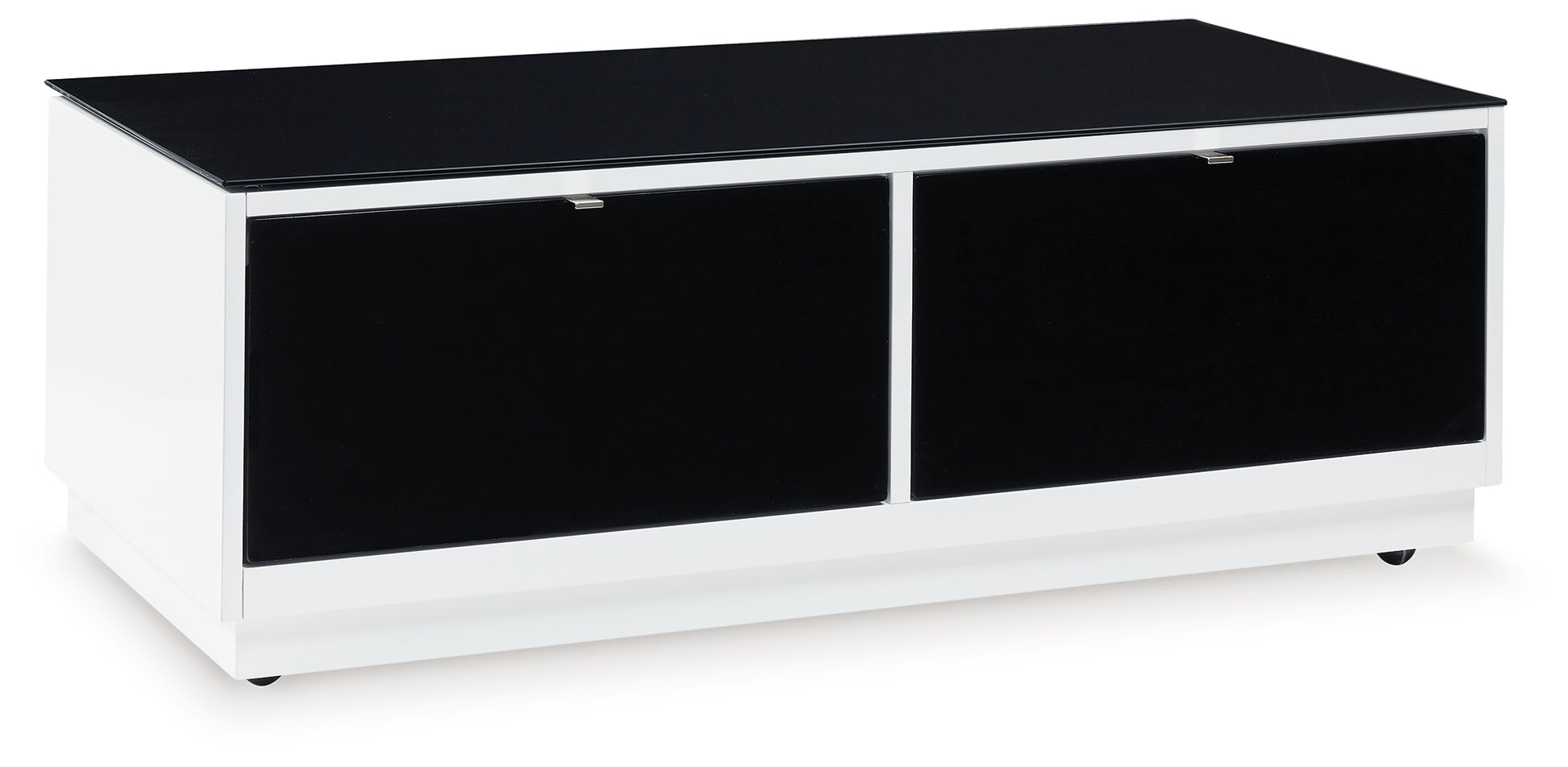 Combining a high-gloss white finish with a black glass tabletop, this occasional table package proves opposites really do attract. It\'s the perfect blend of modern style and functionality. With plenty of storage space, this set is a smart choice on so many levels.
