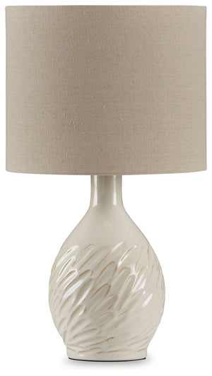 Exuding a relaxed vibe, this ceramic table lamp is a bright idea. The textured base and distressed cream glaze add character and casual elegance to your home. Whether you\'re working or unwinding, this lamp\'s tranquil lighting will create the perfect atmosphere.