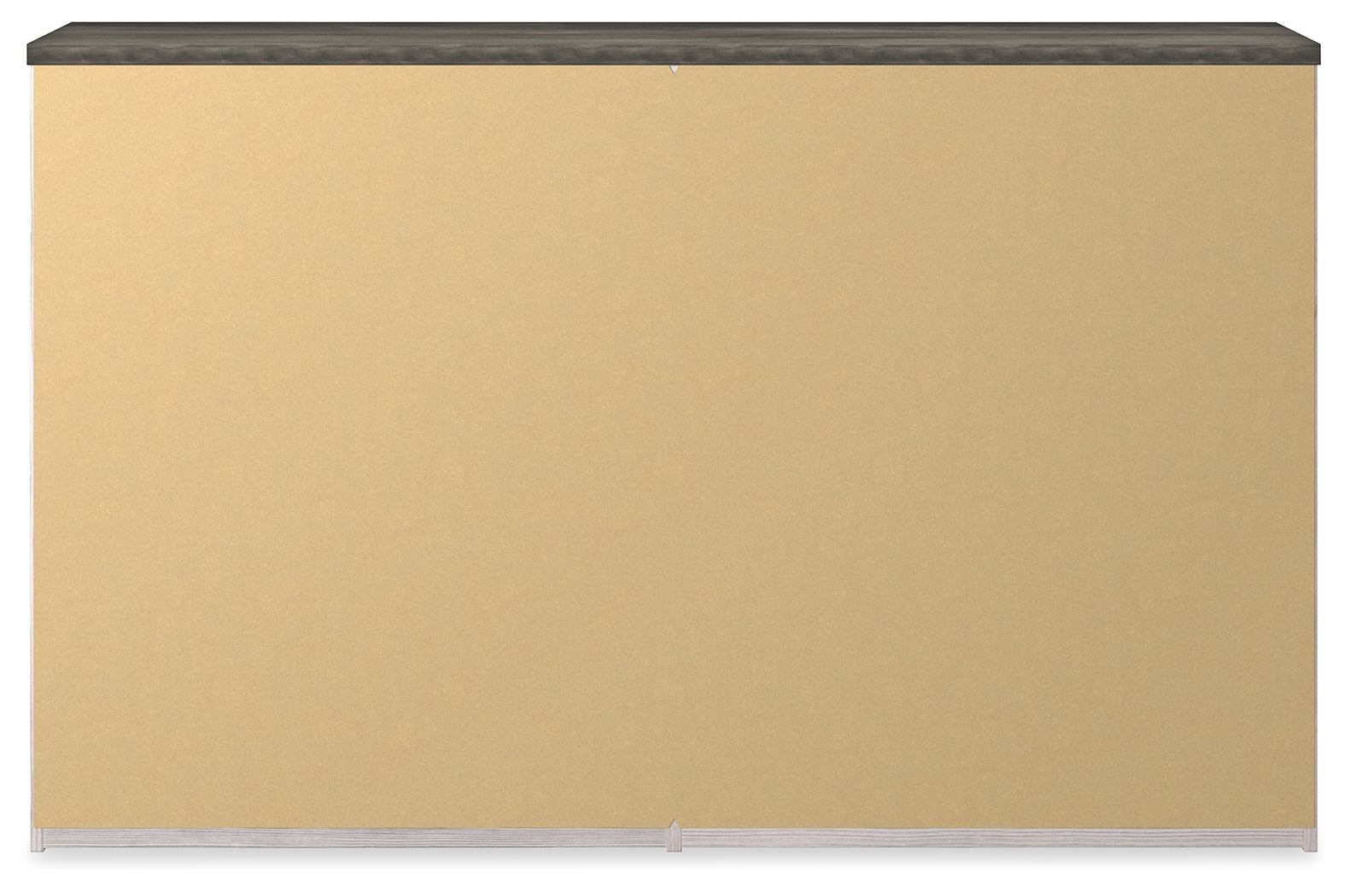 Cool, clean and casually modern. This bedroom package’s wispy whitewash and gray finish sets the tone for your calming sanctuary. Large linear drawer pulls add dimension and authenticity, while the abstract headboard design brings a fresh look to the set.