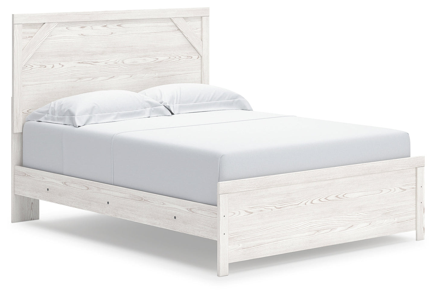 Cool, clean and casually modern. This queen panel bed’s wispy whitewash finish sets the tone for your calming sanctuary. Framed elements and cross-brace accents add dimension and authenticity to the bed’s simply stunning profile. Matching dresser and nightstand.