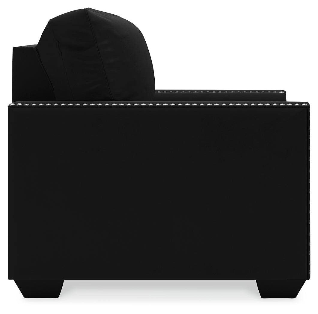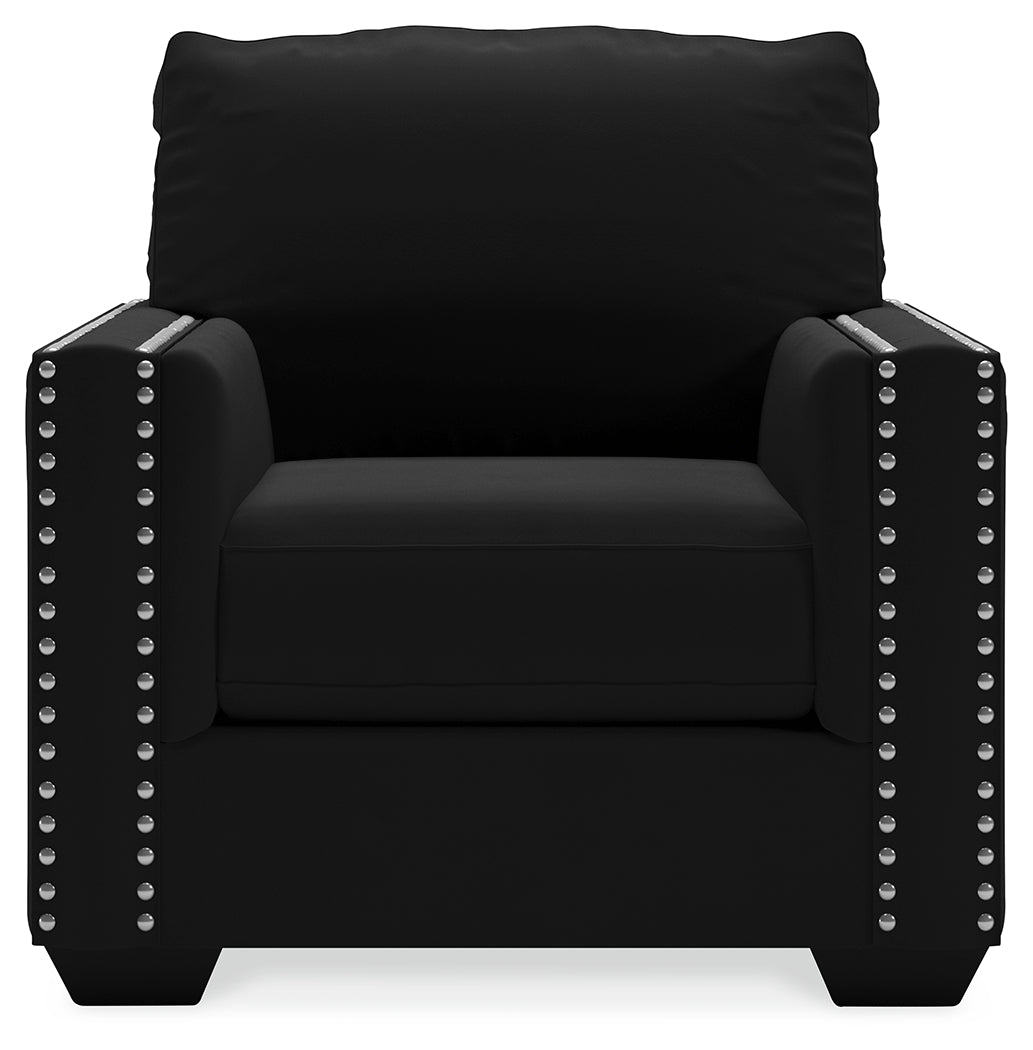 Raise your standard of living with this chair in onyx black. Reserved exclusively for those with a penchant for high-glam home decor, this ultra-chic chair is dressed to impress with a clean-lined profile and sleek track arms punctuated with nailhead trim. Easy on the eyes and alluring to the touch, this decidedly contemporary chair is covered in a low-pile soft velvet that’s impossible to resist.