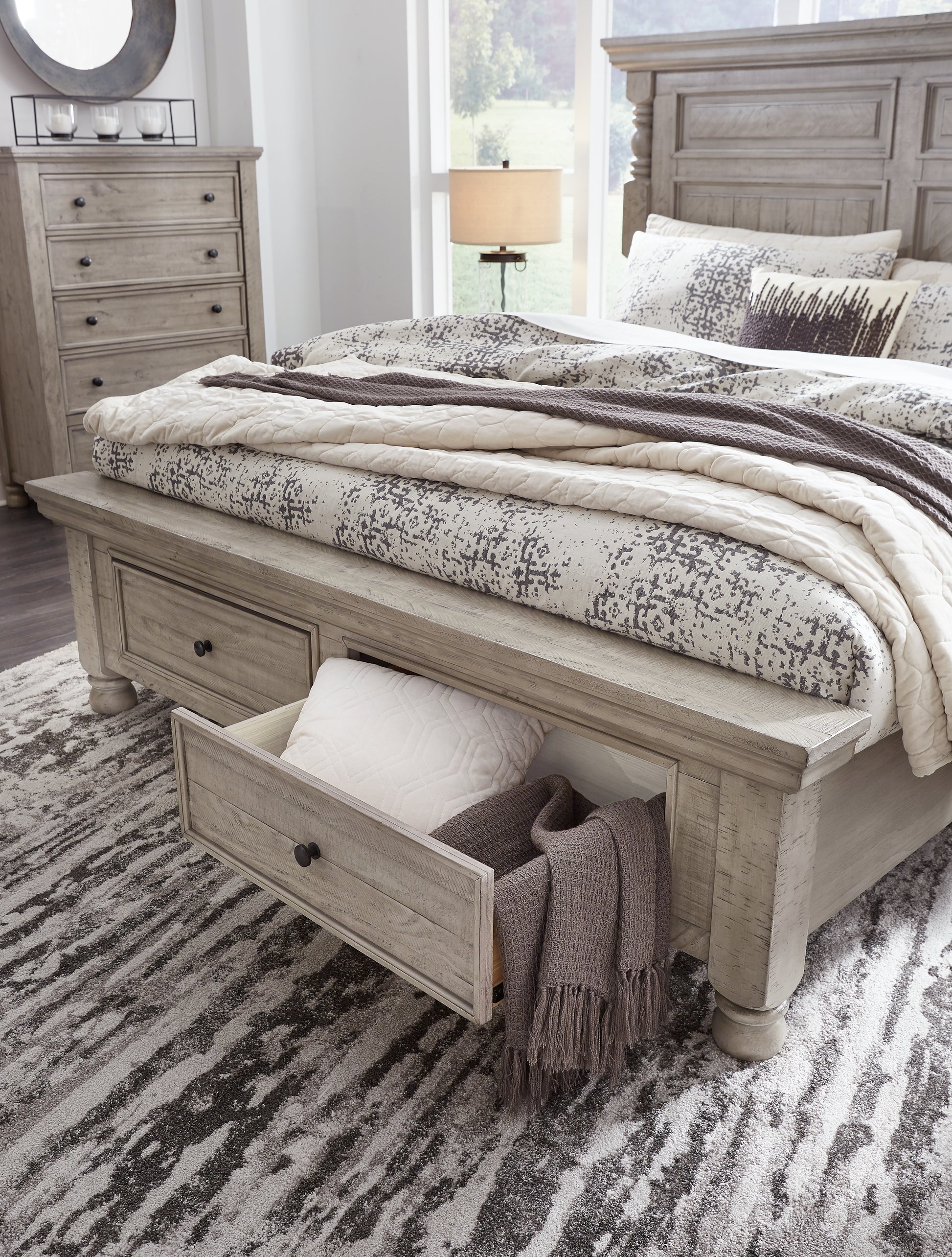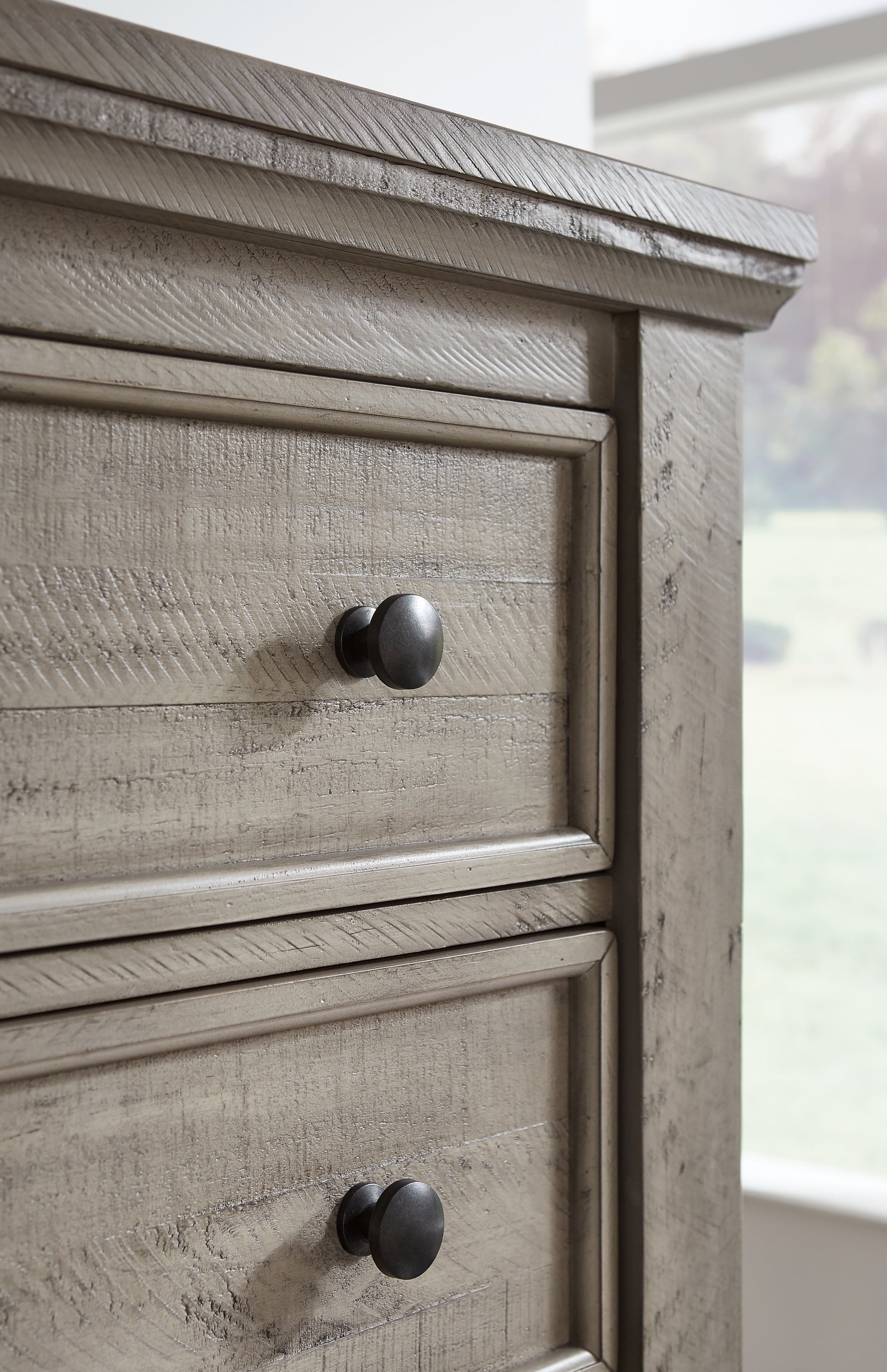 Embrace the feel of a mansion in the countryside when you revel in the romance of this bedroom package. With its substantial presence and thick mouldings, it has a sense of timeless beauty. This picturesque set is polished off with a weathered light gray finish that’s delightfully paired with aged iron-tone knobs for a lovingly worn look.