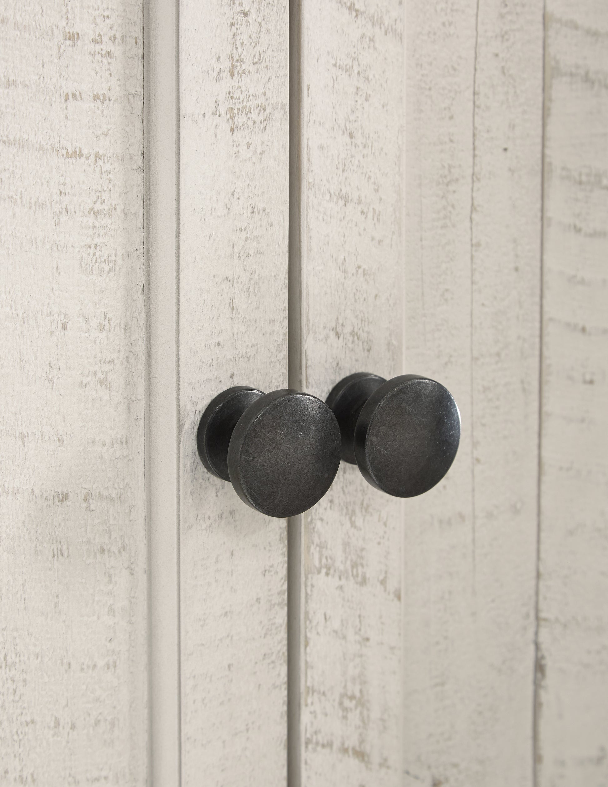 Set your sights on modern farmhouse style with this entertainment center. Distressed two-tone treatment blends a weathered gray with vintage white for an utterly charming effect. Turned posts lend a hearty, substantial look that feels right at home, while plenty of open shelving makes the aesthetic anything but heavy.