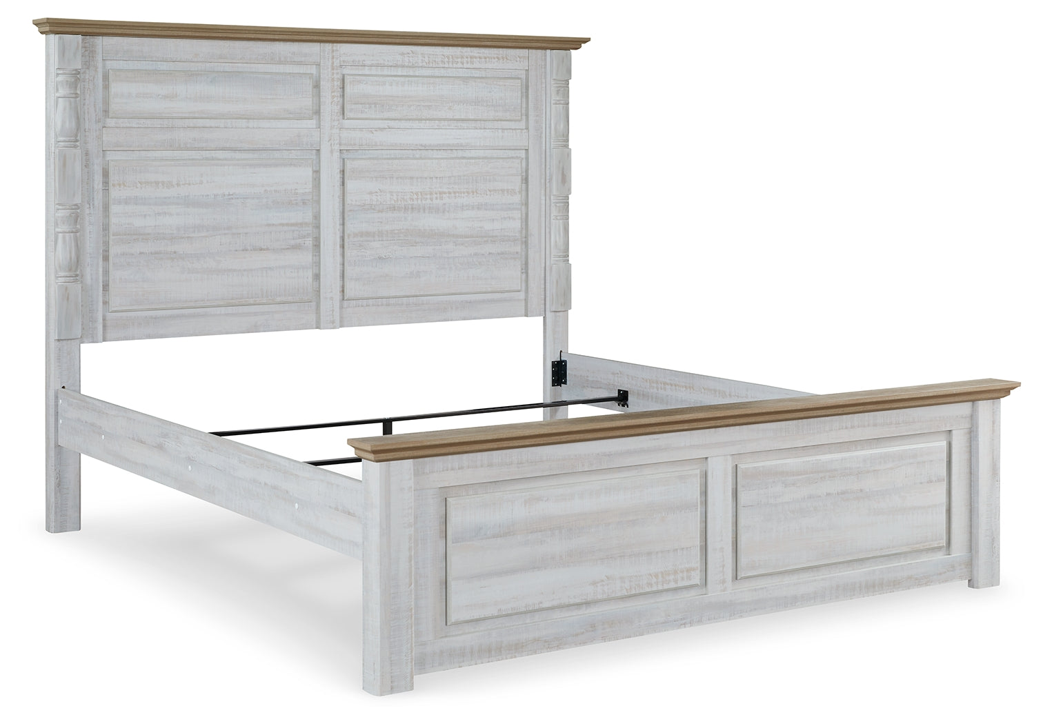Beautifully simple yet rich with character, this bedroom package is a dream come true. It masters the art of simplicity with a charming two-tone look of weathered white complemented by a replicated oak grain. If farmhouse style is calling your name, answer with this timeless set.