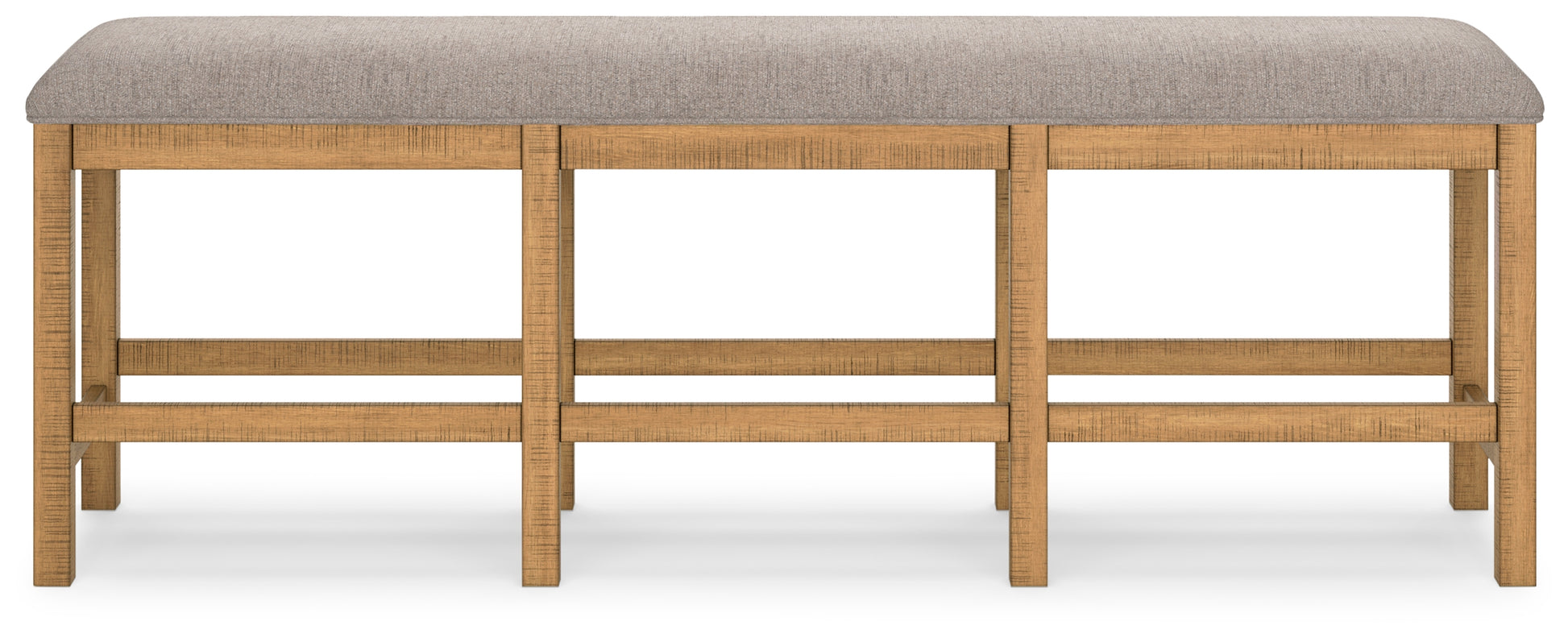 This counter height dining bench is a favorite choice for casual rustic interiors. Offering a great seating alternative, it\'s your answer for impromptu guests. And the textured upholstered seating? Deliciously versatile and comfortable.