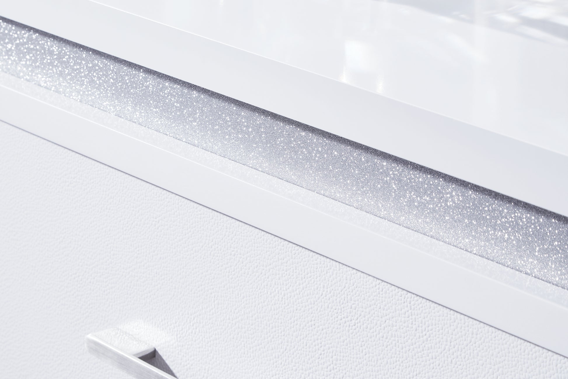 This chest of drawers is a showstopper, bringing a touch of modern glamour to your sanctuary. A sleek white finish and inset glitter accents create a sophisticated feel, while spacious drawers provide practical storage. It’s a simply stunning way to achieve the bedroom of your dreams.