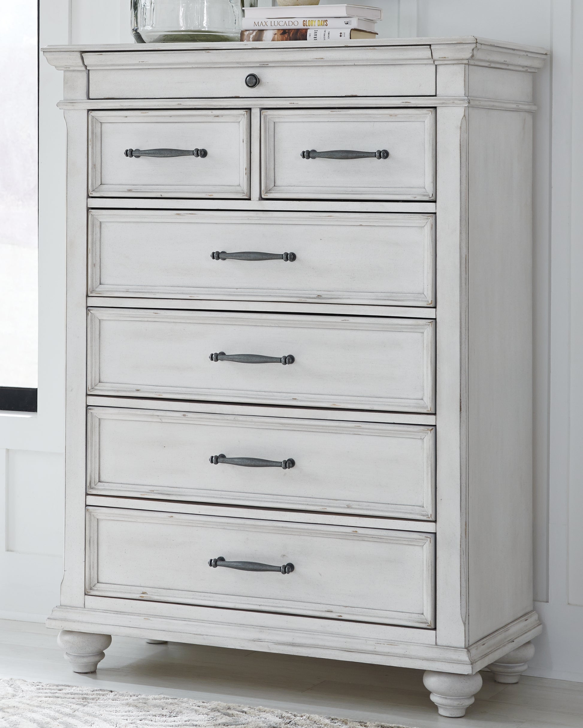 Kanwyn King Upholstered Panel Bed, Dresser, Mirror and Chest