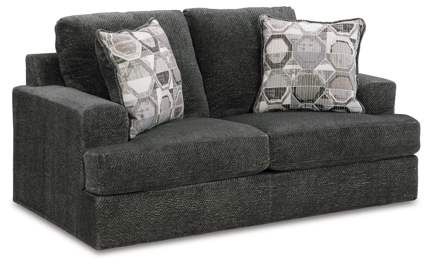 Craving casual refinement? This loveseat has you covered. Its decidedly contemporary frame cradles sizable cushions in an ultra-soft neutral hue, lightening the mood in your living room with simple style and everyday comfort. Solid and geometric accent pillows perfect the chic-meets-cozy vibe.