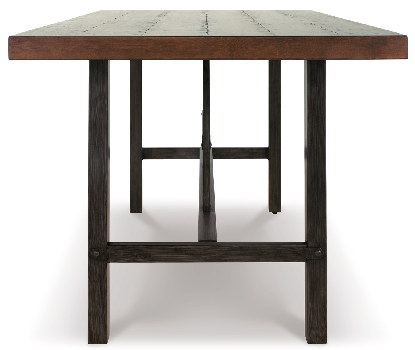 This counter height table elevates industrial-chic style in such a tantalizing way. It might look naturally weatherworn, but the replicated design provides the strength and durability of modern materials. The table\'s smaller scale is ideally suited for high-style homes that are short on space.