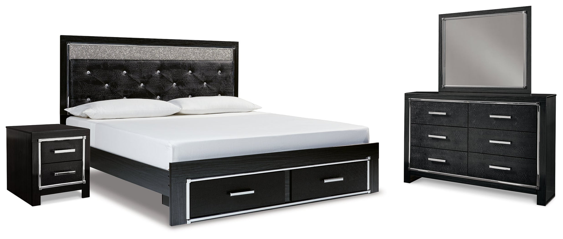 Kaydell King Panel Storage Bed, Dresser, Mirror and Nightstand