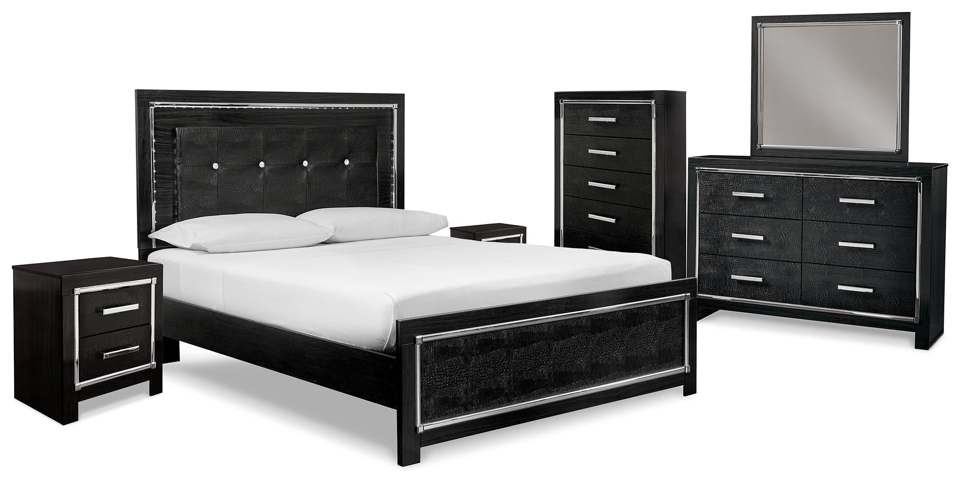 Kaydell Queen Upholstered Panel Bed, Dresser, Mirror, Chest and 2 Nightstands