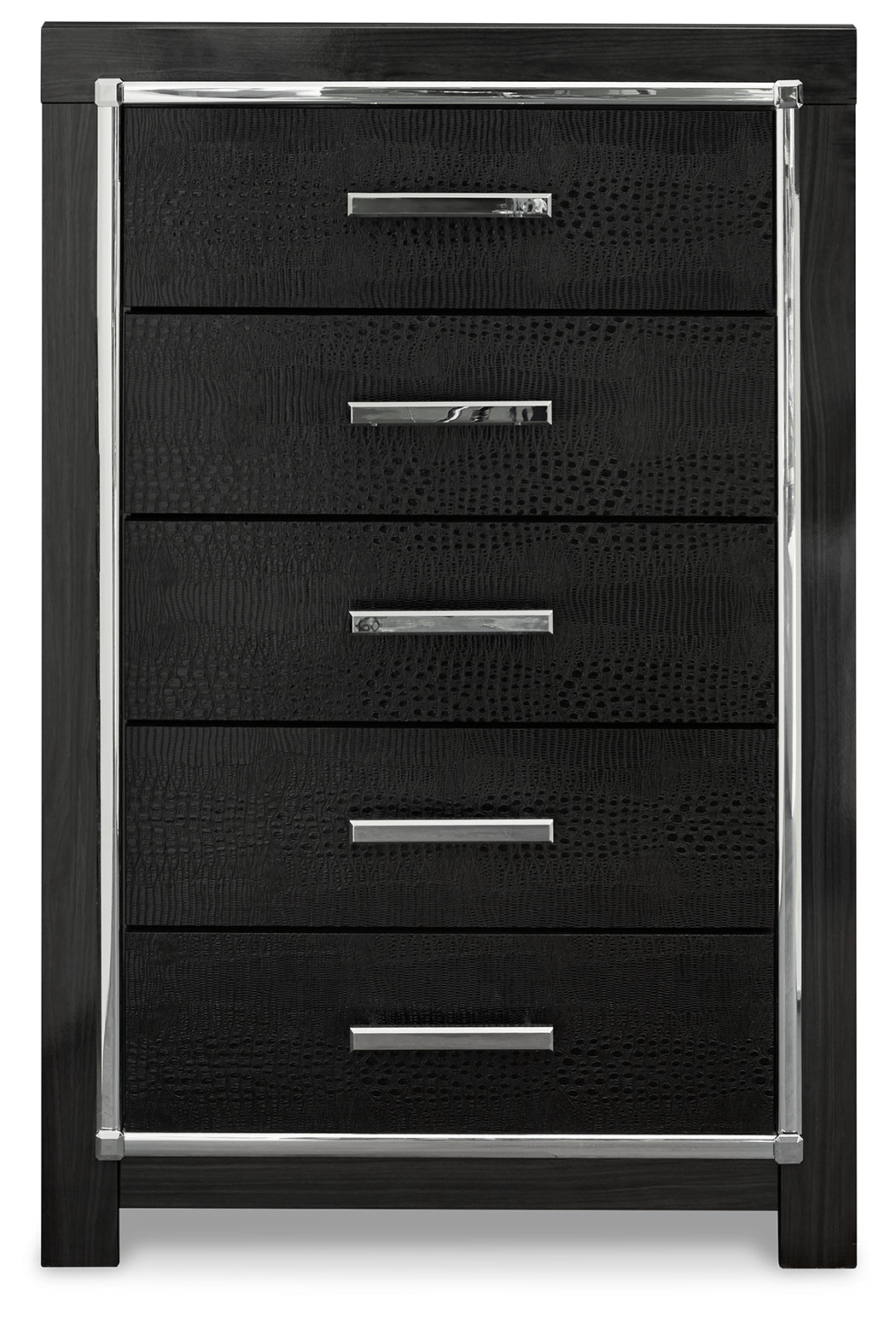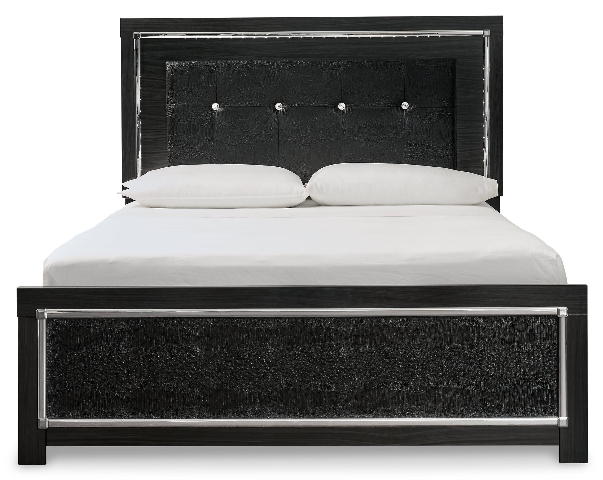 Rest easy. The luxurious look you\'ve been dreaming of is yours for the taking—at a price sure to put you at ease. This panel bedroom set brings a sense of old Hollywood with a contemporary flair. A deep, dark finish, faceted chrome-tone accents and LED lighting exude Hollywood-chic style to the max. Padded windowpane-stitching on the sleek, black upholstery infuses a sumptuous look that\'s upscale and indulgent, and utterly on trend. A wireless remote allows you to control the color and brightness to suit the mood.