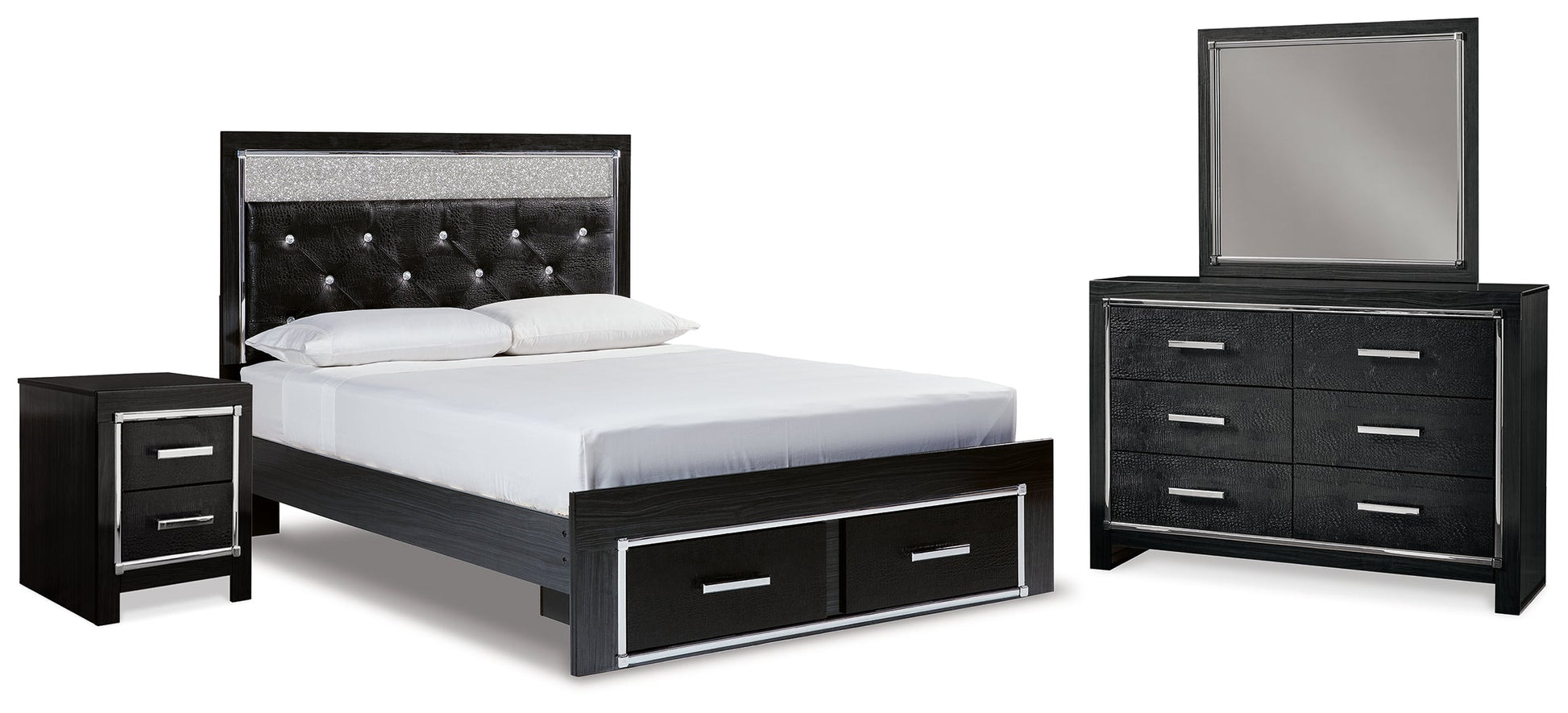 Kaydell Queen Upholstered Storage Bed, Dresser, Mirror and Nightstand