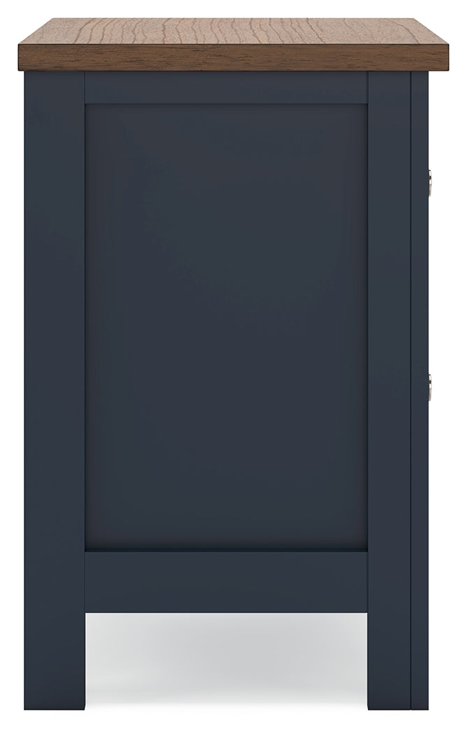 Add homespun charm to your restful retreat with this bedroom package. A modern take on timeless silhouettes, it pairs a dark slate blue finish with light brown tops. Drawer fronts and legs in a classic Shaker style bring an air of beautiful simplicity to the bedroom. Whether it\'s part of a charmingly curated guest suite or a casually carefree kids room, this set is a welcome addition.