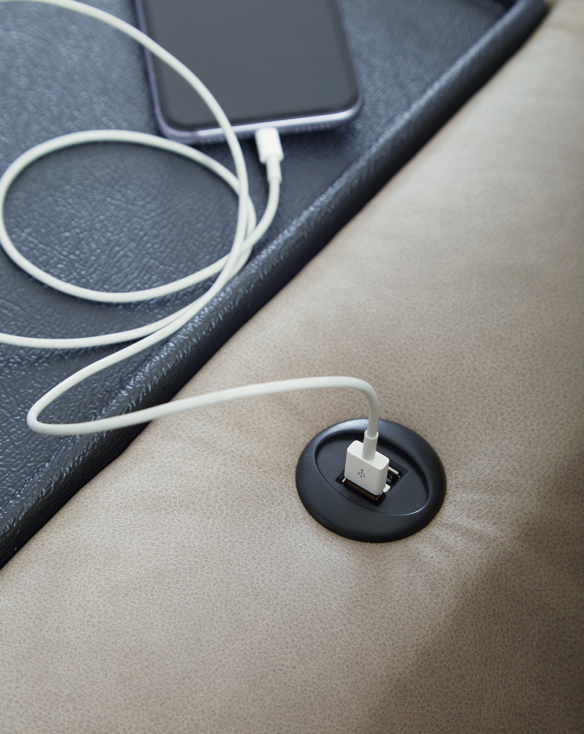 Drop-down table with 2 cup holders and 2 USB charging ports,