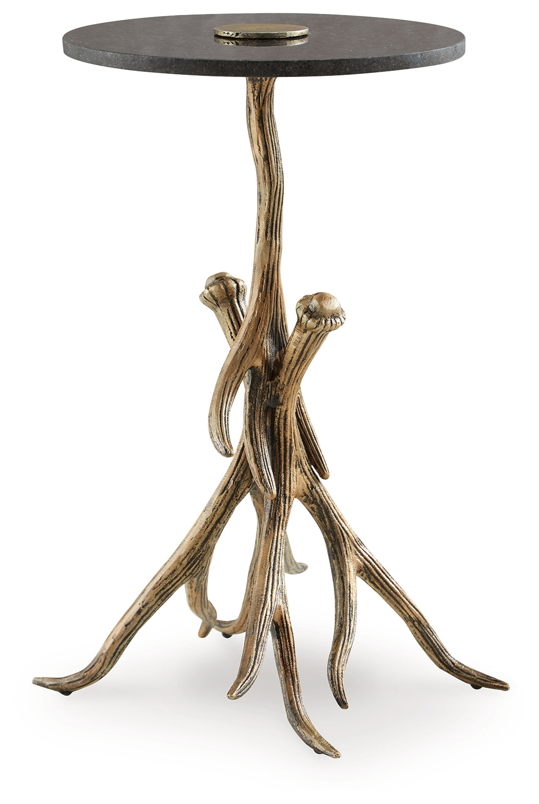 Elevate your living space with the captivating presence of this accent table. Rustic meets contemporary in the nature-inspired statement piece, which effortlessly delivers unique character. Faux antlers and a black marble top add a touch of elegance and character that\'s sure to make a lasting impression.