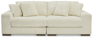 Plush and posh. Showcase your eye for on-trend texture with the statement-making cord upholstery of this sectional sofa. Its stunningly soft fabric entices in an ivory hue, complementing contemporary color palettes. Sink into the cushions and plan to stay a while—this cozy living room centerpiece highlights your high-end approach to comfort and style.