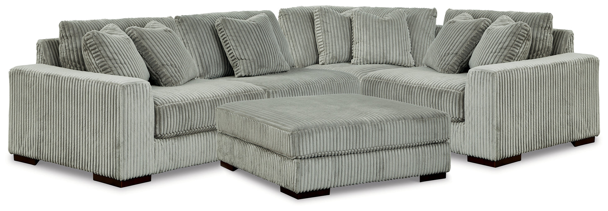 Plush and posh. Showcase your eye for on-trend texture with the statement-making cord upholstery of this sectional and ottoman set. Its stunningly soft fabric entices in a warm neutral hue, complementing contemporary color palettes. Sink into the cushions and plan to stay a while—this cozy living room centerpiece highlights your high-end approach to comfort and style.