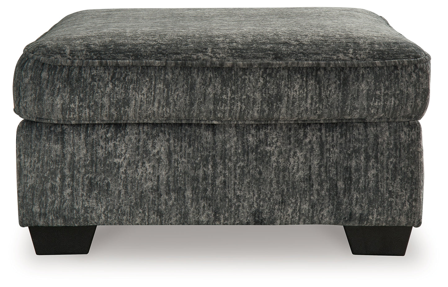 This sectional with chaise speaks to those drawn to fresh, contemporary style with richly neutral appeal. Subtle and sophisticated, the plush upholstery and dark tri-block legs are a natural complement for so many color schemes. On-trend track arms provide great support. Curling up on this sectional to enjoy a night in is never out of the question. Matching ottoman included.